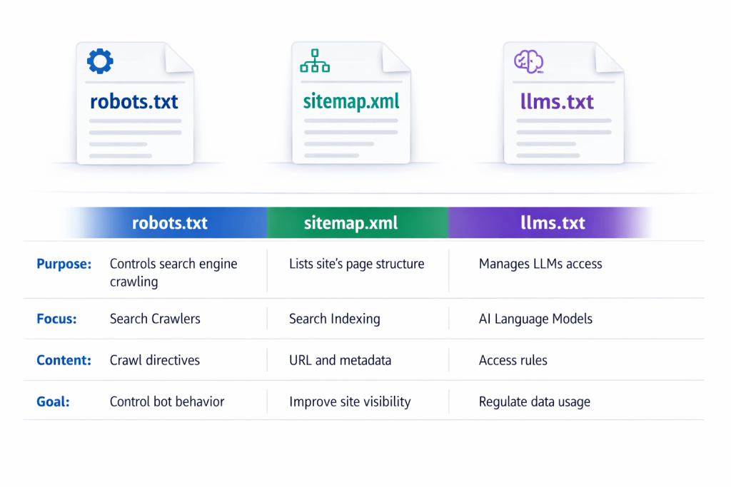 If you are hearing about llms.txt and wondering whether it replaces robots.txt or sitemap.xml, it does not.